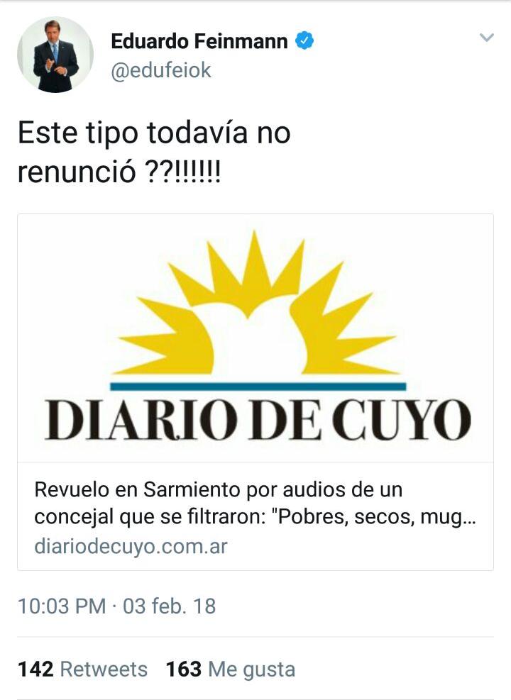 El diario mendocino MDZ replicó la información y hasta Eduardo Feinmann se animó a preguntarse en  sus redes sociales “¿Este tipo todavía no renunció?”