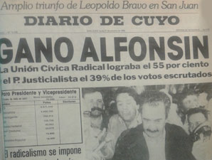 San Juan.- Se cumplen hoy 32 años del regreso a la democracia, con un contundente triunfo en las urnas de Raúl Alfonsín.