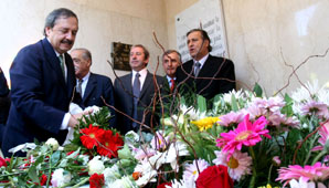 Buenos Aires, 31 de marzo.- Los precandidatos presidenciales Eduardo Duhalde y Ricardo Alfonsín y el vicepresidente Julio Cobos compartieron hoy el homenaje al ex presidente Raúl Alfonsín en el cementerio de La Recoleta, al cumplirse dos años de su fallecimiento.