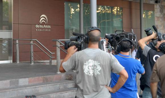 Minutos después de concluir un acto en la Casa Rosada Cristina fue a visitar a su marido y al al salir del sanatorio en breves declaraciones a la prensa dijo que el ex presidente "está bárbaro en una habitación común y mañana, calculo que a las 11.30, estaremos saliendo del sanatorio".