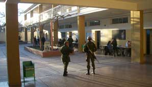 La imponente presencia de los uniformados y sus armas de gran porte se hizo notar en todos los edificios educativos donde se votó.