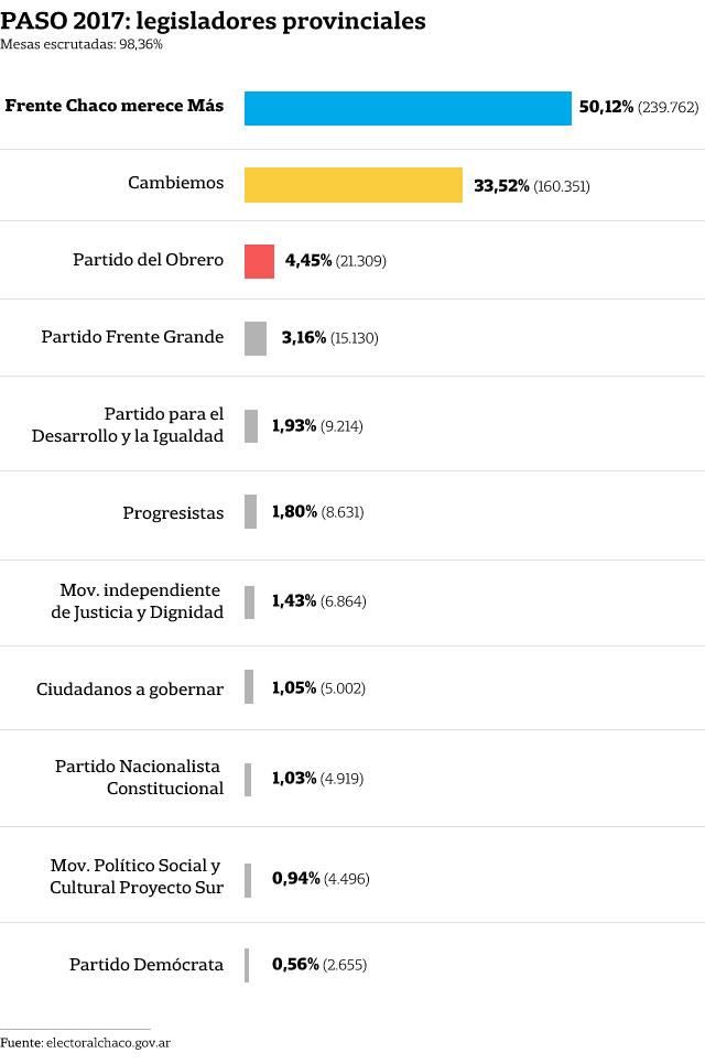 Chaco Merece Más, del gobernador peronista Domingo Peppo, se impuso sobre Cambiemos en las primarias provinciales.