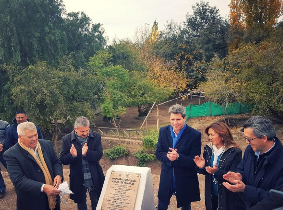 Ayer en la mañana, finalmente, el puente del río Las Tumanas en Valle Fértil quedó oficialmente inaugurado. Esta obra, que arrancó en noviembre de 2016, era un gran anhelo para la gente de Valle Fértil. Es que, durante años, cada vez que había temporal y crecía el río Las Tumanas la villa cabecera de este departamento y otros pueblos quedaban totalmente aislados. El puente tiene 42 metros de largo y casi 12 metros de ancho, incluidos dos veredines peatonales. Del acto participó el intendente de Valle Fértil, Omar Ortiz; el gobernador de San Juan, Sergio Uñac, y otras autoridades provinciales y municipales.