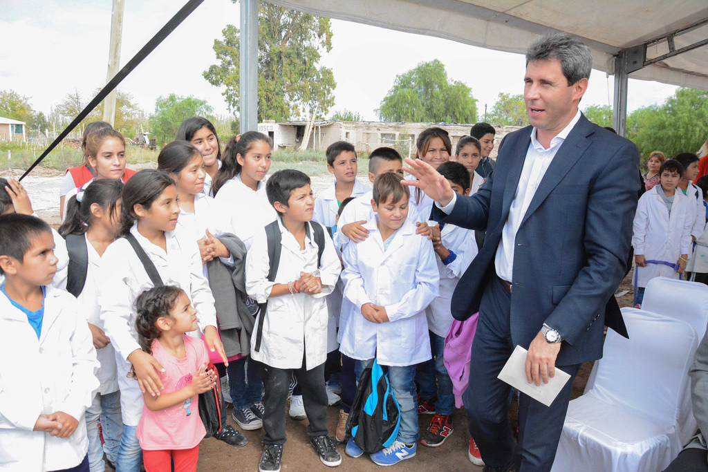 La visita del gobernador y su equipo a Sarmiento incluyó también la inauguración de 3.100 metros de conexión de red de agua potable que comprende las calles Bufano, 9 de Julio, Corrientes y Villagra en la localidad de Cochagual. El costo de la obra superó los $400.000 y corresponden a fondos municipales.