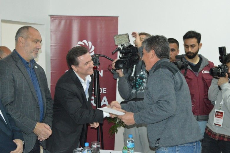 Este jueves, en la flamante sede de ADEL se firmó el acta para mejorar el uso de la red de agua para riego.  El área beneficiada será Jáchal-Pampa Vieja. Son 11.000 hectáreas con derecho a riego y unas 6000 hectáreas cultivadas. Esta zona comprende a más de 1000 productores.