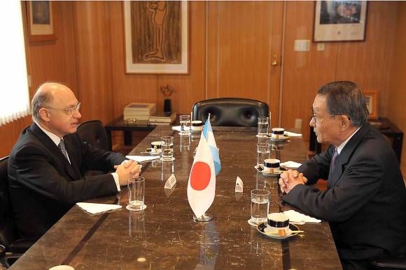 En su breve paso por Japón, el canciller, Héctor Timerman, se reunió en Tokio con Mikio Sasaki, uno de los máximos directivos de Mitsubishi Corporation quien elogió la política de desendeudamiento del gobierno argentino. A renglón seguido, el empresario le trasmitió a Timerman el interés del grupo nipón por participar en la construcción