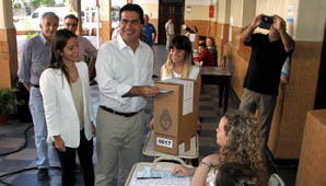 Minutos después, desde Chaco el gobernador Jorge Capitanich pasó por el cuarto oscuro y disparó: "Con esta votación la ciudadanía puede ejercer la consolidación de ese proyecto político o generar un cambio cualitativo de agenda". La tropa de los que primero votaron la completó el ministro de Eduación porteño, Esteban Bullrich.