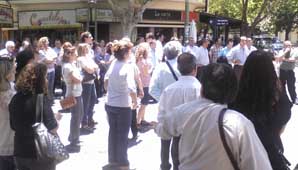 San Juan 5 de diciembre.- Los empelados del Poder Judicial mantuvieron una nueva asamblea. En esta oportunidad, fue pasada el mediodía, en la puerta del palacio de tribunales y cortando calle Rivadavia. El abogado de la Unión Judicial informó las novedadez de la causa y fueron escuchados los planteos de los afiliados.