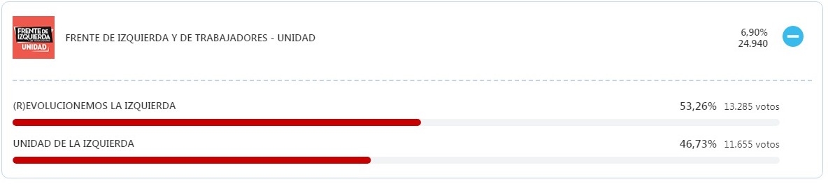 El Frente de Izquierda y los Trabajadores (FIT) obtuvo el 6,90% del total de los votos y superó el piso impuesto por la ley del 1,5 % para llegar a noviembre.