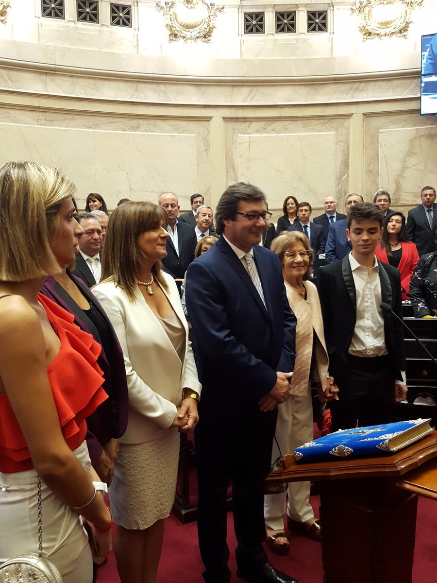El representante de Cambiemos, Roberto Basualdo, prestó juramento con la presencia de sus hijas, nietos y el intendente de Santa Lucía, Marcelo Orrego.