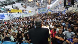 Tras encabezar el acto, Kirchner dijo a Télam que "es momento de seguir trabajando por la Argentina por su crecimiento, y yo estoy haciendo eso, al responder si continuaba evaluando la posibilidad de tomar las riendas del PJ.