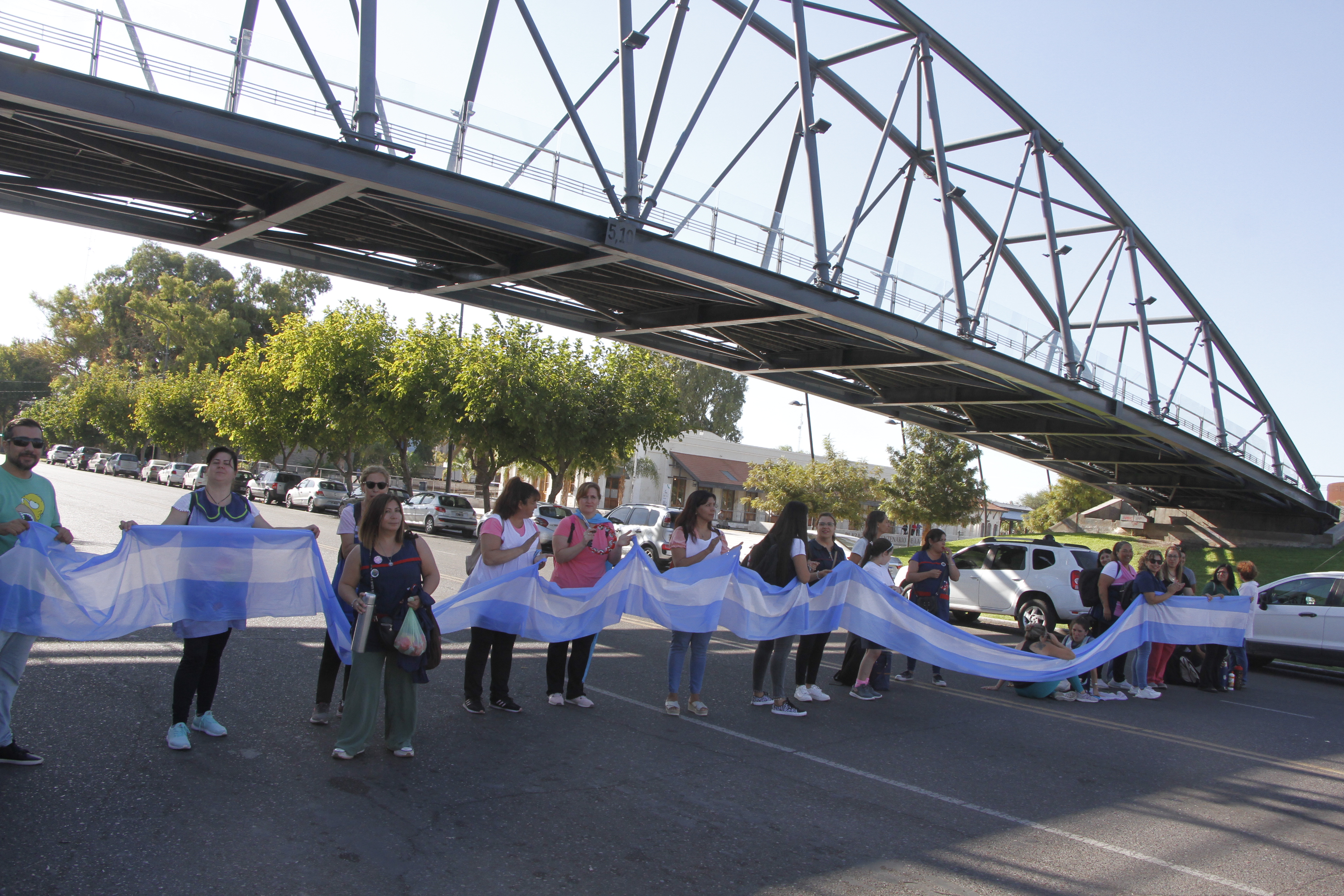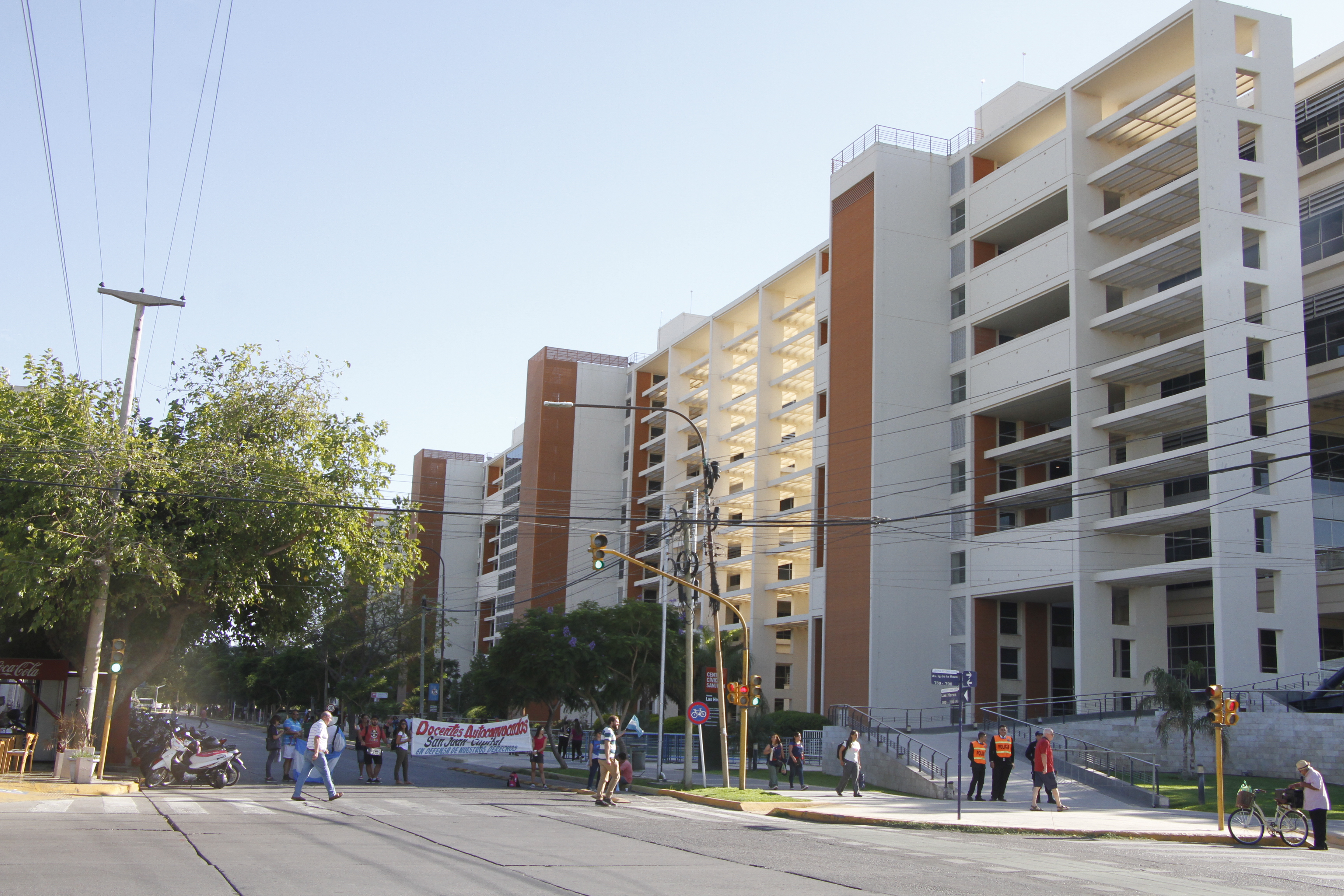 En las cuatro esquinas del Centro Cívico hubo apostados docentes, con banderas y pancartas, dejando intransitables a esa altura las avenidas Libertador e Ignacio de la Roza, y las calles España y Las Heras. Esto obligó, por ejemplo, a que el tránsito que viene del Oeste fuese desviado a la altura de Urquiza, para el Norte o Sur.