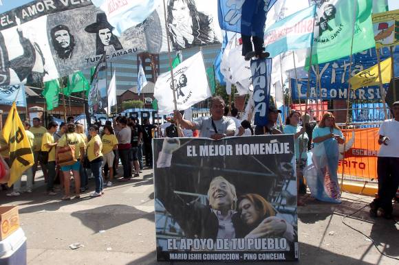 El parte de ayer, el más breve de los tres leídos por el vocero presidencial, fue nuevamente seguido por cientos de militantes apostados en la puerta principal del Hospital Austral que festejaron ruidosamente la favorable evolución de la salud de la mandataria. Muchos de los seguidores kirchneristas permanecieron en el partido de Pilar, en el kilómetro 50 de la ruta Panamericana, desde el lunes pasado, pese al rigor climático. Las agrupaciones, entre ellas la Juventud Kirchnerista, el Movimiento Evita, la Agrupación Kolina, estuvieron junto a adherentes del intendente de Florencio Varela, Julio Pereyra. Se destacó, al igual que el jueves pasado, la bandera con la consigna ‘El amor vence al odio‘, con la imagen presidencial.