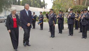 San Juan, 16 de junio.- El gobernador José Luis Gioja recibió la visita de la embajadora de Gran Bretaña e Irlanda del Norte en Argentina, Shan Morgan. Después de los saludos protocolares, una formación de la escuela de Cadetes de Policía, con bandera y banda, rindieron honores a la embajadora en los jardines de Casa de Gobierno. También declararon a Morgan "huesped de honor".