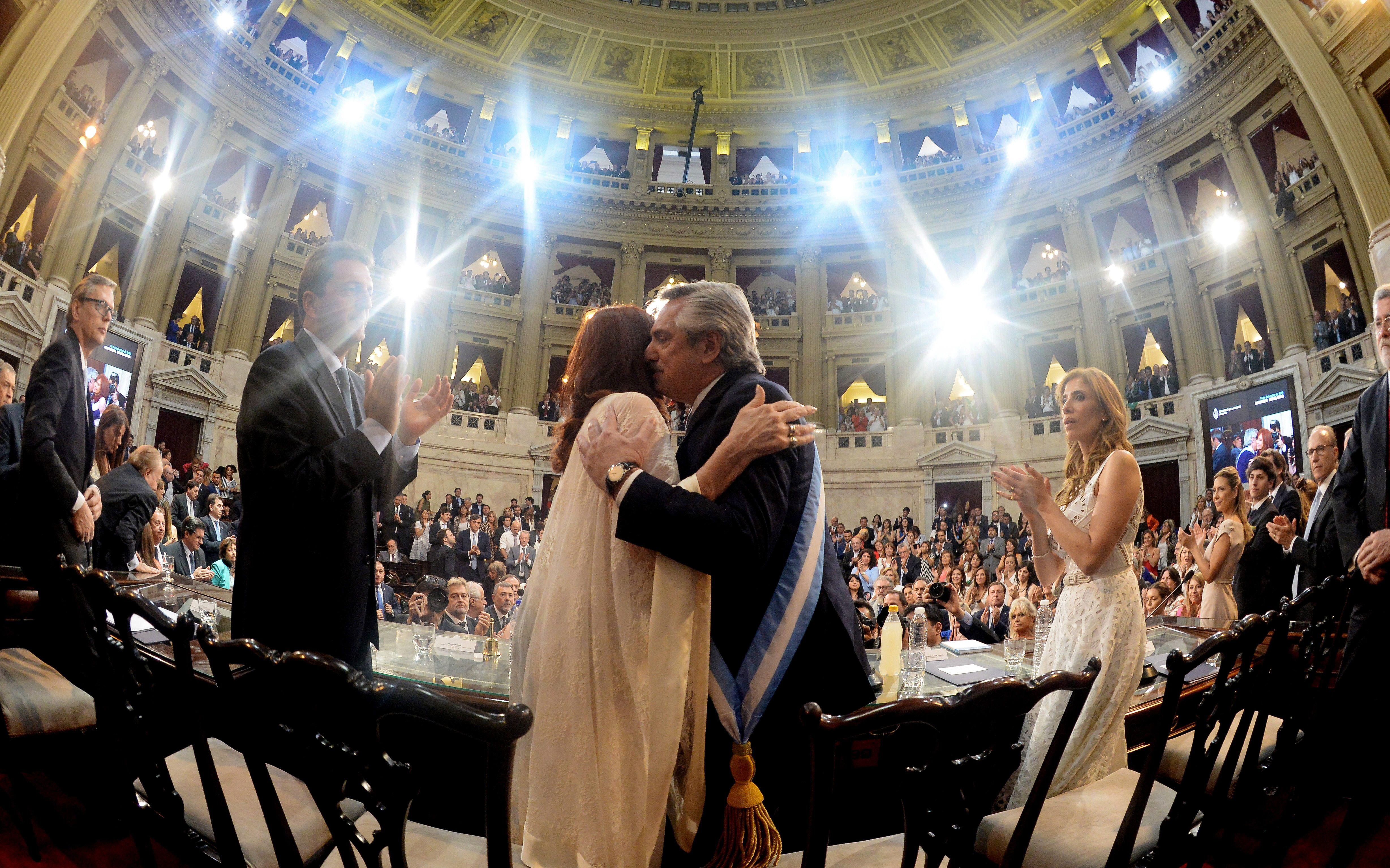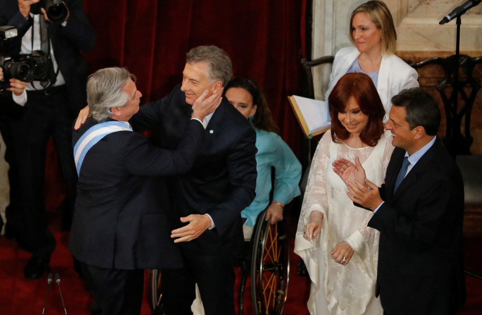 Cuando el reloj marcaba las 12.05, la Asamblea Legislativa tomaba juramento al presidente Alberto Fernández y a su vice Cristina Kirchner, en una ceremonia en la que Mauricio Macri le traspasó a su sucesor los atributos presidenciales y que culminó con un discurso del mandatario, en el que llamó a la "unidad de toda la Argentina".