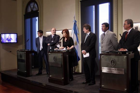 De manera sorpresiva, la jefa de Estado se encargó de hacer el anuncio de manera personal en una conferencia de prensa en Casa de Gobierno, junto a los ministros de Trabajo, Carlos Tomada, y de Economía, Amado Boudou, los titulares de la AFIP, Ricardo Echegaray, y de la Anses, Diego Bossio, y el secretario de Hacienda, Juan Carlos Pezoa.