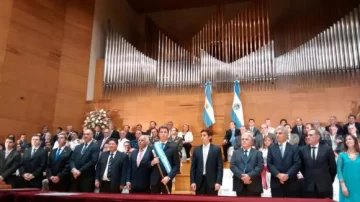 San Juan.- El electo gobernador Sergio Uñac, tras recibir los atributos de mando, tomó jura a uno por uno de sus ministros, y lo hizo en este orden