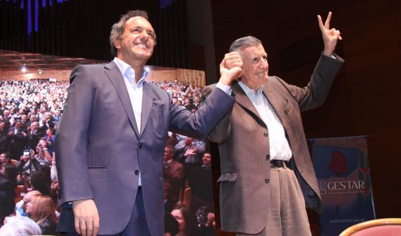En el marco de un acto organizado por Gestar, la escuela de formación política del PJ, Scioli entró al auditorio en medio de un fuerte aplauso. Fue tanta la cantidad de gente, que en el foyer Sur se tuvo que montar una pantalla gigante para que los que se quedaron afuera de la sala pudieran seguir de cerca el acontecimiento.