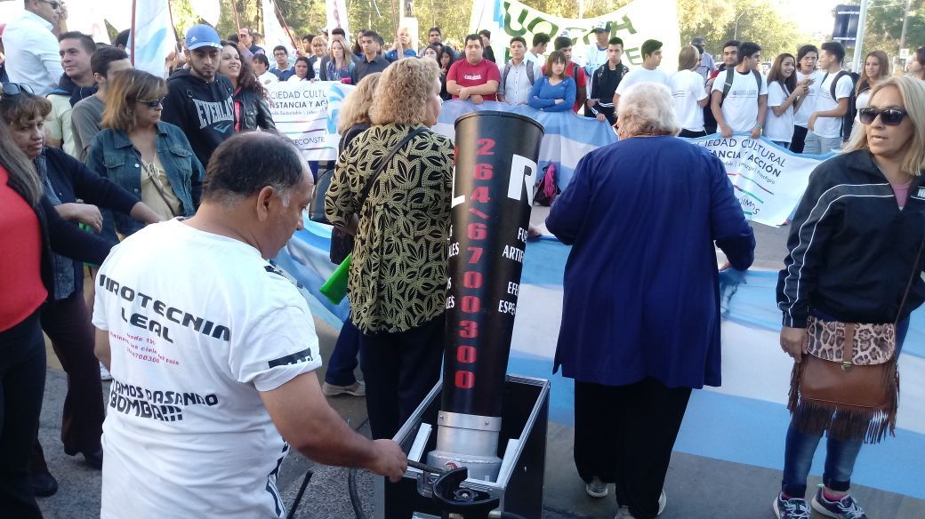 La gente llegó desde distintos departamentos con banderas argentinas, de las organizaciones y hasta una máquina que tira papelitos con el fin de dejar su marca.