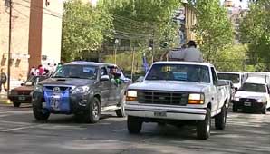 Con bocinazos y folletos, los vehículos, irrumpieron las calles aledañas a la Plaza 25, y mostraron su malestar por la “promesa no cumplida” de las mineras en la contratación de prestadores iglesianos.
