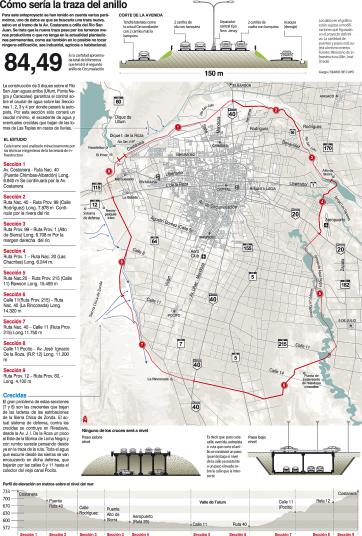 Una y otra vez fue analizada la traza de la nueva Circunvalación. Es que el camino para llegar al anteproyecto, que en esta edición presenta DIARIO DE CUYO (ver infografía en pág. 4) con detalles exclusivos, fue largo y contempló muchos parámetros para diseñar el anillo vial, y uno de ellos fue que en lo posible, la autovía no pase por terrenos con cultivos permanentes o edificaciones, lo que le va a permitir al Gobierno evitar pagar fuertes sumas en expropiaciones, según dijeron desde el Ministerio de Infraestructura. A finales del mes que viene, o principios de septiembre; se llamará a licitación para que una consultora haga el diseño definitivo del proyecto técnico, paso clave porque también allí se le pondrá precio a la megaobra, de la cual las autoridades no arriesgan a decir ni cuándo comenzará, ni que tiempo de ejecución tendrá, variables que estarán atadas a la disponibilidad de fondos.