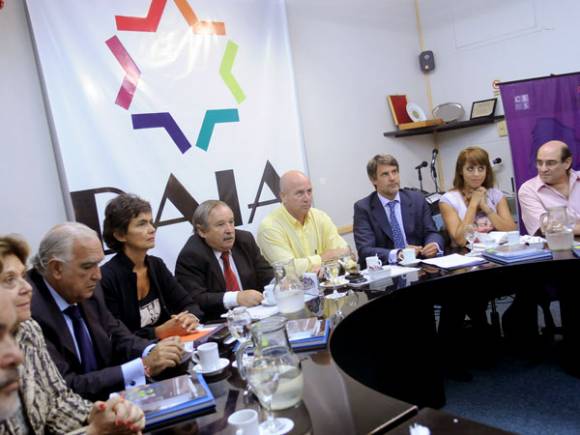 Buenos Aires, 19 de febrero.- Representantes del radicalismo, el ARI-CC, el FAP y Libres del Sur se reunieron con el titular de la DAIA, Julio Schlosser, y su vice, Waldo Wolff, ante quienes se comprometieron a no dar quórum para la sesión del 27 de febrero.