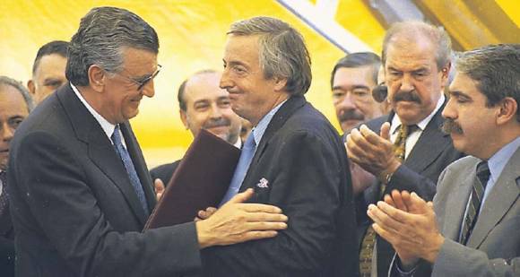 El 25 de marzo de 2004, Néstor Kirchner llegaba a la provincia por segunda vez como Presidente de la Nación y era la primera vez que José Luis Gioja lo recibía como Gobernador. El santacruceño vino cargado de anuncios y fondos para obras, forjando de esa manera una estrecha relación con la administración giojista. Ambos ya se habían reunido en San Juan cuando eran candidatos y firmaron un acta compromiso que incluyó, entre otras cosas, el financiamiento para los diques, el Hospital Rawson y la ruta a Calingasta, puntos que el mandatario nacional fue cumpliendo durante su gestión. Inclusive, la buena sintonía que cimentó el Gobierno local con el Presidente la hizo extensiva hacia su esposa y futura sucesora, Cristina Fernández.