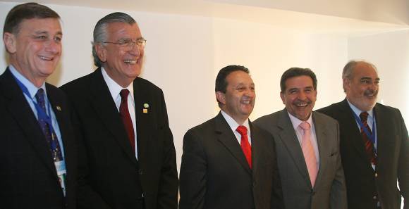 Los mandatarios llegaron en este orden al cónclave en el Hotel Provincial: Luis Beder Herrera (PJ/La Rioja), Hermes Binner (PS/Santa Fe), Ricardo Colombi (UCR/Corrientes) y Celso Jaque (PJ/Mendoza). Y junto a José Luis Gioja y delegados de Brasil, Uruguay, Paraguay y Chile, almorzaron ragú de chivo con miniñoquis y bife de chorizo en una charla cordial. De ella resultó una declaración conjunta que elevarán a los presidentes hoy, de la que no se quiso difundir el contenido, pero que, en líneas generales, celebra la integración a través del Mercosur y desea que la situación entre Colombia y Venezuela mejore, dijeron fuentes calificadas.