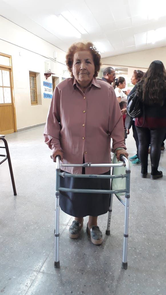 Con sus 90 años y ayudada por un andador, llegó a emitir su voto a primera hora y afirmó que seguirá así "hasta que el cuerpo aguante".