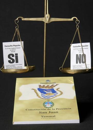Nunca antes se hizo una consulta popular inherente a un tema provincial en San Juan. Por eso, la jornada de las urnas de hoy quedará como una de las más simbólicas de la historia democrática local. Tras su aprobación (que se dio con una mayoría aplastante, el 17 de marzo último), la ley que impulsó el gobernador estableciendo una enmienda constitucional en el artículo que habla sobre la cantidad de mandatos a los que pueden acceder un mandatario provincial y su vice, necesita ser ratificada por el pueblo para quedar vigente. Esto último pasa con la mitad más uno de los votos por el SI. Si hay empate o gana el NO, la enmienda quedará rechazada y su efecto práctico inmediato será que Gioja no podrá ser candidato a gobernador este año. Esas son las dos opciones que el elector tendrá hoy en el cuarto oscuro. Sin candidatos, sólo dos boletas: una del ‘SI’ y otra del ‘NO’.