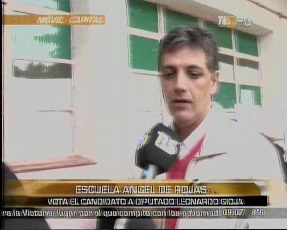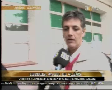 San Juan.- Distendido, de buen humor y en familia, así llegó Leonardo Gioja, candidato del FpV como diputado por Capital, a emitir su voto.