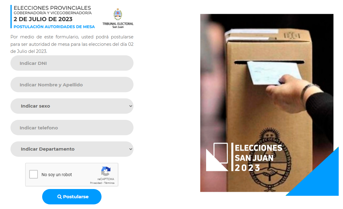 Desde el organismo indicaron que, quienes estén interesados en postularse pueden inscribirse de modo online en eleccionessanjuan2023.ar/autoridades/ (hacer click aquí)