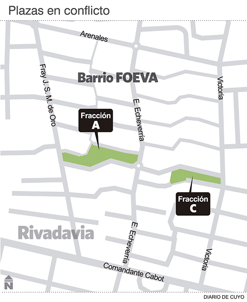 Tal cual lo establece la ley, cuando el gremio Foeva encaró en 1972 el barrio del mismo nombre en Rivadavia reservó dos terrenos para que fueran de dominio público y allí se construyeran una escuela, un centro de jubilados o una comisaría, por ejemplo, aunque nunca se terminaron de donar. Con el paso del tiempo, los inmuebles se convirtieron en plazas. De hecho, una de ellas fue inaugurada en tres ocasiones por tres gobernadores distintos en su historia, según contaron los vecinos. Pero en los últimos cuatro años se dieron maniobras sospechosas que hicieron que los actuales espacios verdes terminaran en manos privadas, al punto de que uno de ellos ya fue cerrado por un particular y que, según fuentes oficiales, reclamaría 12 millones de pesos para su expropiación. El reclamo vecinal llegó a oídos de la gestión uñaquista, que hizo las primeras averiguaciones y decidió que Fiscalía de Estado ponga una denuncia para que se investigue si hubo una estafa.