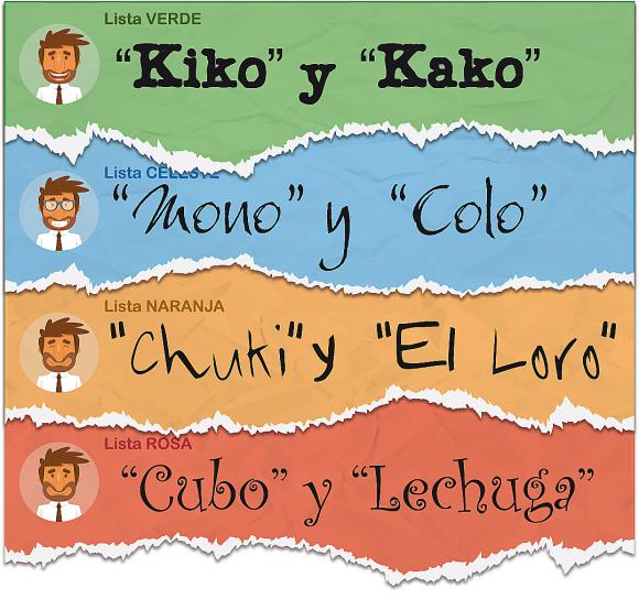 Entre los alias curiosos, se encuentra el de la joven Edith Liquitay, a quien le dicen “Chicho”, por su carácter aguerrido, similar al exvolante central de Boca Juniors, “Chicho” Serna. Al zondino Ricardo Castro lo apodan “Cubito”, aunque figurará como “Cubo”. El origen se debe que su padre le decían “Cubetera”. El caucetero Jorge “Lechuga” Frías también heredó el alias del padre, mientras que Alejandro Berenstein señaló que su sobrenombre es “Colo”. El angaquero Daniel Riveros es conocido como “Popular”, tiene un negocio con ese nombre y lo llevará en la boleta. Un caso similar pasa con Rubén “Mono” Espinoza, quien tiene una ferretería en 25 de Mayo con su sobrenombre. En el listado hay referencias a nacionalidades como “Turco” Jaliff, el “Tano” Ganyitano y el “Ruso” López.