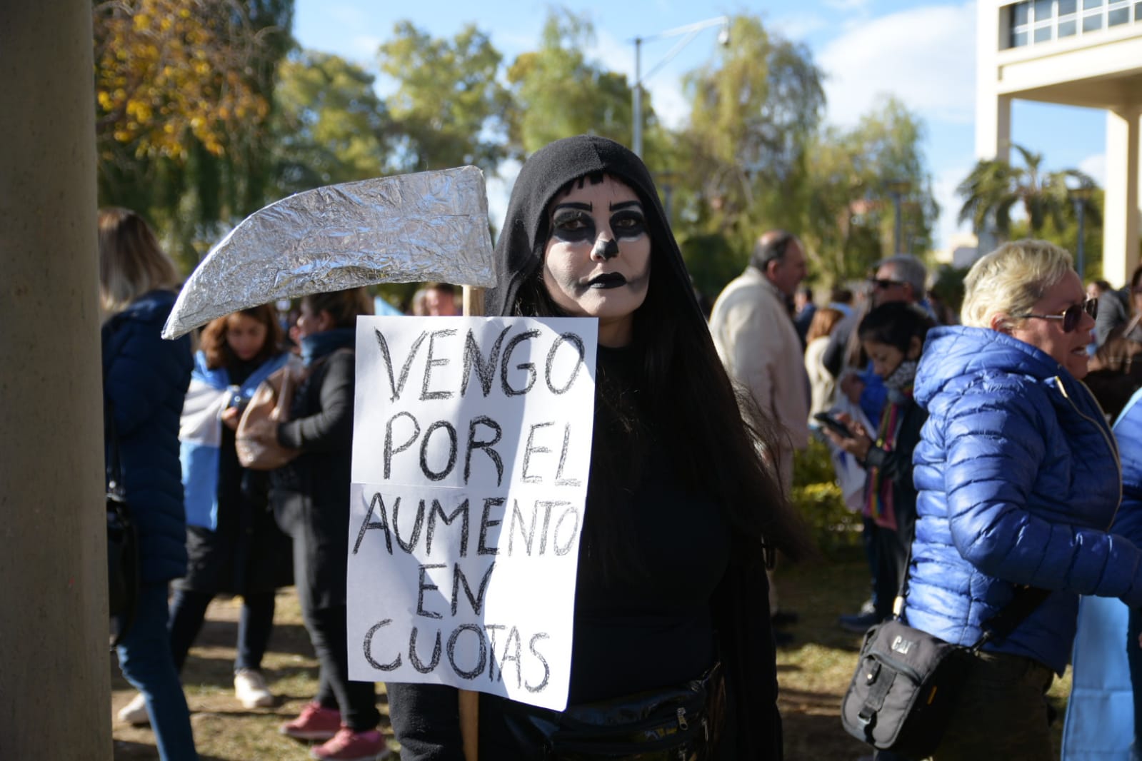 Como viene sucediendo desde hace días, en las puertas del Centro Cívico un importante número de docentes autoconvocados analizan la última propuesta de aumento salarial que dio a conocer esta mañana el gobernador Sergio Uñac.
