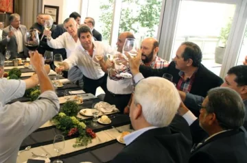 Luego de las formalidades de la reunión por temas de gestión y partidarios, los referentes del peronismo se dieron el gusto de compartir un almuerzo distendido. Dejaron la mesa de debate y fuera de toda estructura protocolar, se encontraron en un brindis que propuso Sergio Uñac. Los otros dirigentes no dudaron en sumarse, ya que se iban poniendo de pie y desde cada una de las mesas elevaban la copa hacia el Gobernador. En eso se escuchó desde el fondo un ‘viva Perón’, a lo que José Luis Gioja sin dudar acompañó con las primeras estrofas de la marcha peronista. Fue suficiente para que otros se prendieran alzando la voz, con palmas y hasta alentando con un brazo en alto.