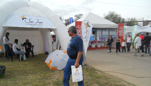 La primera visita oficial fue en 1977, tres días después del trágico terremoto de Caucete. El 26 de noviembre arribó al aeropuerto acompañado por varios funcionarios de ese entonces y fue recibido por el gobernador Alberto Lombardi, capitán de navío, y por el director del hospital de emergencia.