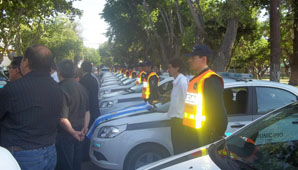 San Juan, 5 de noviembre.- El municipio de Chimbas puso en funcionamiento hoy los 16 patrulleros adquiridos en el Plan de Seguridad. Los móviles recorrerán 26 zonas conflictivas en conjunto con el Comando Radioeléctrico.