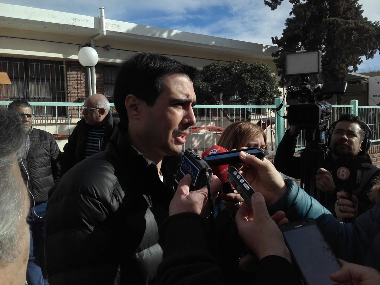 Luis Rueda, precandidato del Frente Todos, votó minutos después de las 11 en la Escuela Antonino Aberastain, el mismo establecimiento en el que emitieron sufragio Sergio y Rubén Uñac.