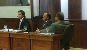 San Juan, 4 de Noviembre.- Una nueva jornada del jury de enjuiciamiento al titular del Quinto Juzgado Civil, Carlos Macchi, comenzó minutos después de las 9. Hoy es el turno de los alegatos de la parte defensora, integrada por los hijos del magistrado Carlos y Juan Manuel Macchi, y el abogado Guillermo Toranzo.