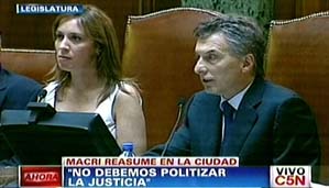 Macri también habló de ‘trabajar articuladamente para encontrar mecanismos de concertación que garanticen la paz social‘, en referencia a todos los sectores que compenden la sociedad y de la necesaria ‘separación de poderes‘ para ‘no judicializar la política‘ ni ‘politizar la justicia‘.