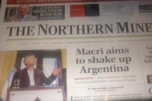Buenos Aires.- Mauricio Macri fue destacado en la portada de The Northern Miner, diario especializado en Minería, lectura obligada en la feria mundial de la industria (PDAC 2016) que se realiza en Canadá y en la cual participan los actores más importantes del planeta.