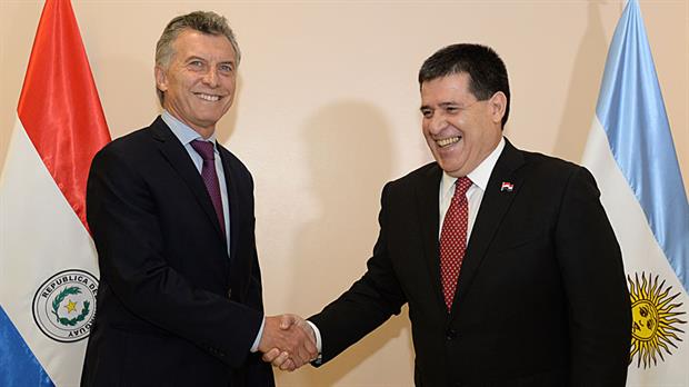 Mauricio Macri afirmó hoy que se terminó con una "discusión histórica" con Paraguay al firmar el acuerdo con su par de ese país, Horacio Cartes , en torno a la deuda por la represa hidroeléctrica de Yacyretá.