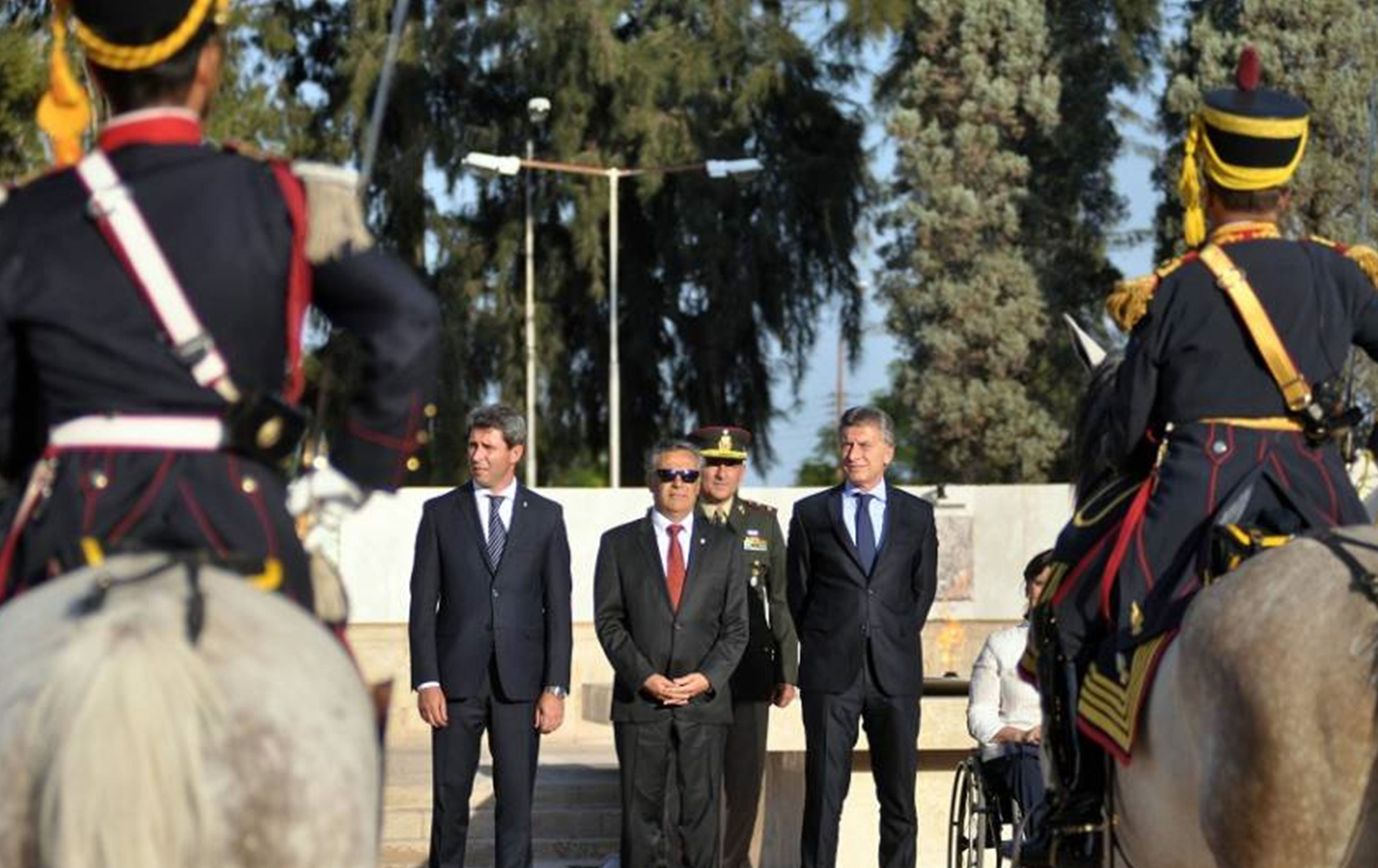 Durante el acto central por el Bicentenario del Cruce de los Andes, que se llevó a cabo ayer en el Campo Histórico El Plumerillo, Mendoza, el presidente Mauricio Macri se apoyó en la gesta de San Martín para convocar a la unidad nacional al afirmar que los principales legados del Cruce fueron la libertad y la enseñanza de que para que “un proyecto tenga éxito, hay que trabajar en equipo”. De la ceremonia también participó el gobernador de San Juan, Sergio Uñac, quien destacó que las columnas del General San Martín partieron de Mendoza el 24 de enero de hace 200 años, pero que el Libertador cruzó por San Juan, tal como lo hace la expedición que civiles y militares recrean en la provincia desde 2005.