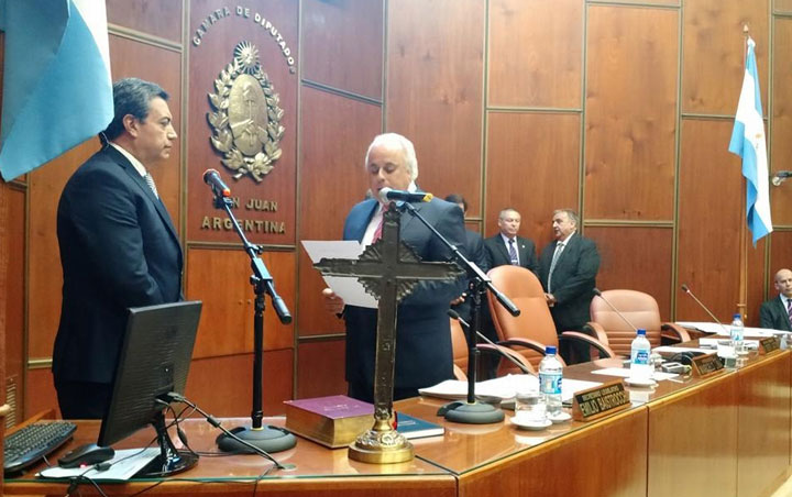 San Juan.- Una comisión especial de diputados fue a la búsqueda del electo vicegobernador Marcelo Lima, en un acto tradicional y de carácter netamente protocolar. La flamante máxima autoridad de la Legislatura tomó juramento y, tras cartón, hizo lo propio con todo el cuerpo de diputados.