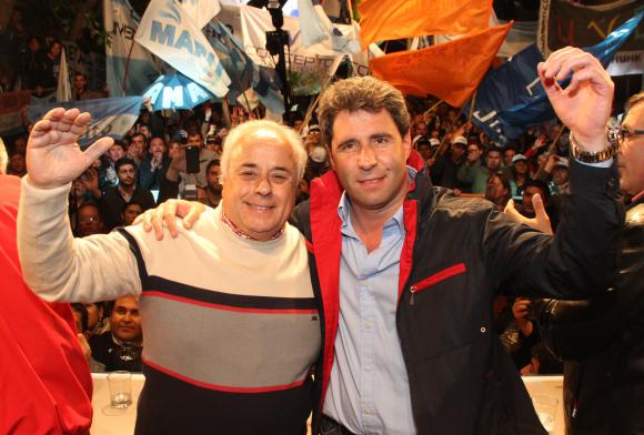 Pasadas las 19 la militancia justicialista comenzó a llegar a la casona de Calle 25 de Mayo con claros ánimos de festejos ante el escrutinio provisorio que daba por cómodo ganador a Serio Uñac como gobernador de la provincia. A las 20.30, la calle ya era una marea de cientos de personas que con banderas y pancartas coreaba “Vamos juntos, vamos con Uñac, que sabe gobernar”, cuando en el escenario sonaba el jingle que utilizó el pocitano durante la campaña. Cuando los datos oficiales comenzaron a corroborar la tendencia favorable al candidato del Frente para la Victoria, la ansiedad por la llegada del nuevo gobernador se hacía sentir. A las 22.30, Sergio Uñac junto a su compañero de fórmula Marcelo Lima llegaron al PJ y realizaron una breve conferencia de prensa dentro del partido previo a subir al escenario para que la gente con cánticos y gritos de apoyo confirmaran la victoria.