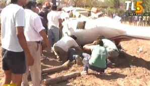 El video muestra el momento en el que los vecinos y personal de la municipalidad del Valle retira los cuerpos del interior de la aeronave.