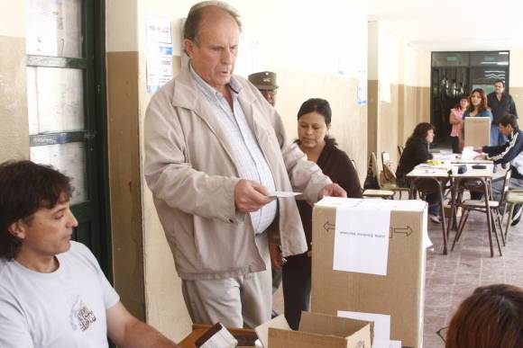 San Juan, 23 de octubre.- El candidato a la gobernación por el Frente Opositor, Carlos Navas, votó pasadas las 10:30 de la mañana en la escuela Rafael Obligado, ubicada en el departamento Zonda.