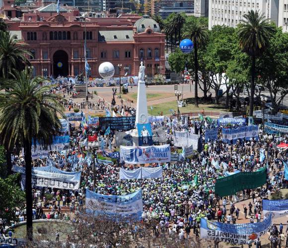 Poco antes de la apertura del cerco y a una cuadra de ese vallado, una mujer sostenía una pancarta con ambos brazos en alto, cerca del Cabildo. El cartel tenía una inscripción en agradecimiento por el padrinazgo por parte del ex jefe de Estado de su séptimo hijo varón, un niño de 9 años que la acompañaba, enfundado en la bandera nacional. "Agradezco la ayuda de 900 pesos anuales que recibimos del Estado debido a que mi hijo es ahijado de Kirchner", dijo la compungida asistente, Adriana Cáceres.