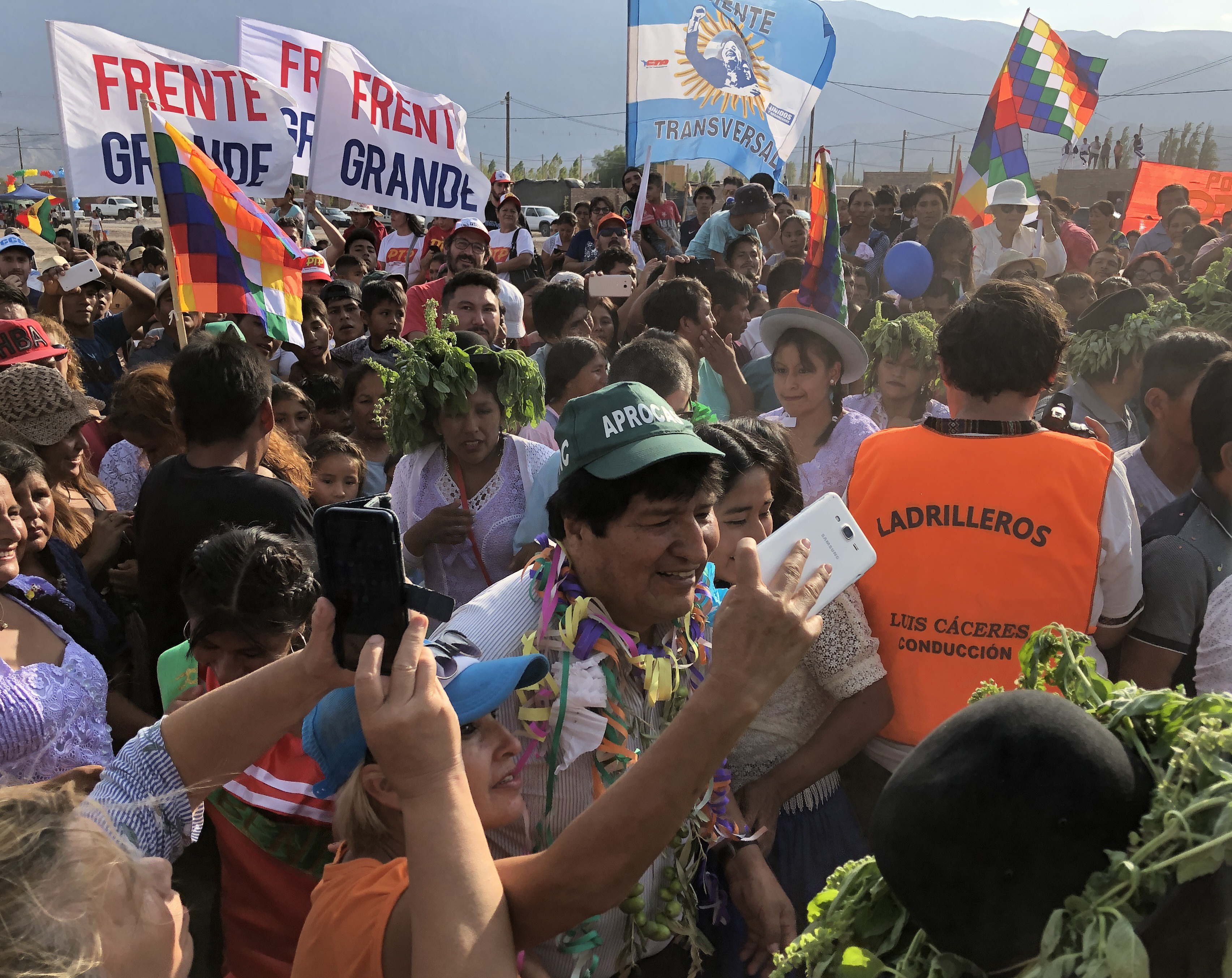 Como ocurrió el viernes pasado, el expresidente de Bolivia Evo Morales tuvo ayer una breve visita por San Juan. En tres horas participó de una danza típica de su país, lideró un acto político en Pocito y se reunió con dirigentes gremiales. El principal objetivo de su llegada fue recaudar apoyo político de cara a las elecciones presidenciales que se llevarán adelante el 3 de mayo en Bolivia. El exmandatario no es candidato pero postula al dirigente del Movimiento al Socialismo (MAS), Luis Arce. En ese marco, criticó a su competencia, Jeanine Añez, y aseguró que si los residentes de su país en la Argentina le dan su apoyo, su partido alcanzará el 51 por ciento de los votos, lo que permitirá "ganar de manera contundente en primera vuelta". Pese a su presencia en la provincia, tuvo poco a nulo contacto con la prensa.